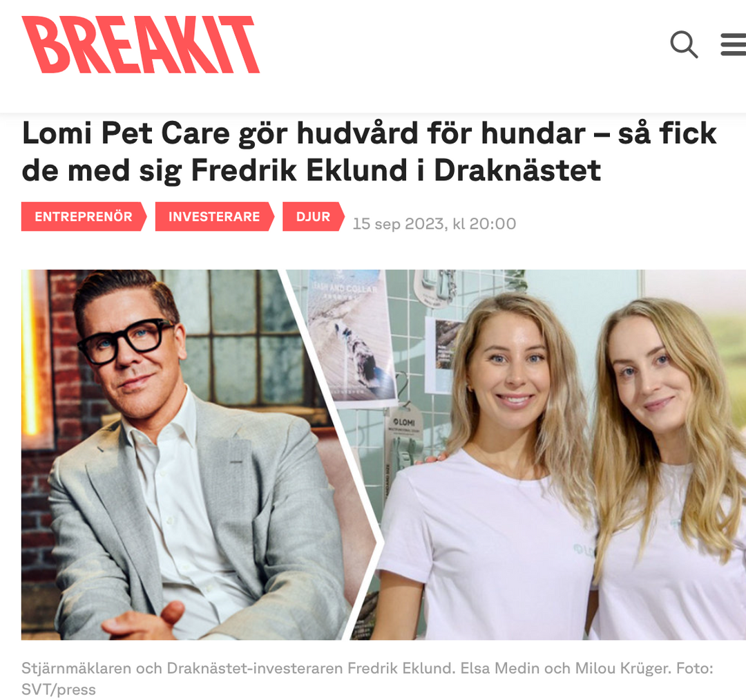 Hösten 2023, var vi med i Draknästet. Där vi fick med oss Fredrik Eklund som investerare.